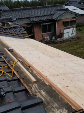 瓦を重ねる前に雨漏りを防ぐための防水材を貼っていきます。
