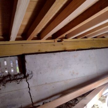 廊下の床下では束・根太まわりを点検し、補強材を追加して床を支える力を高めます。沈みやきしみの原因に合わせ、確実に固定していきます。