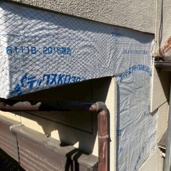 外壁のひび割れ・傷み部は下地から補修し、防水シート(スーパーエアテックス)を確実に固定して雨仕舞を回復。クラックからの雨水侵入を抑え、下地の腐食や劣化の進行を防ぐことにつながります。
