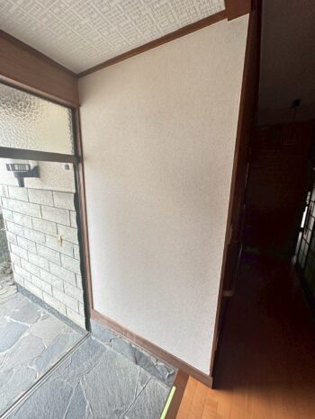 建具上部の壁もクロス仕上げで統一感を確保。継ぎ目が目立たないよう丁寧に施工し、通路全体が清潔感のある印象になりました。